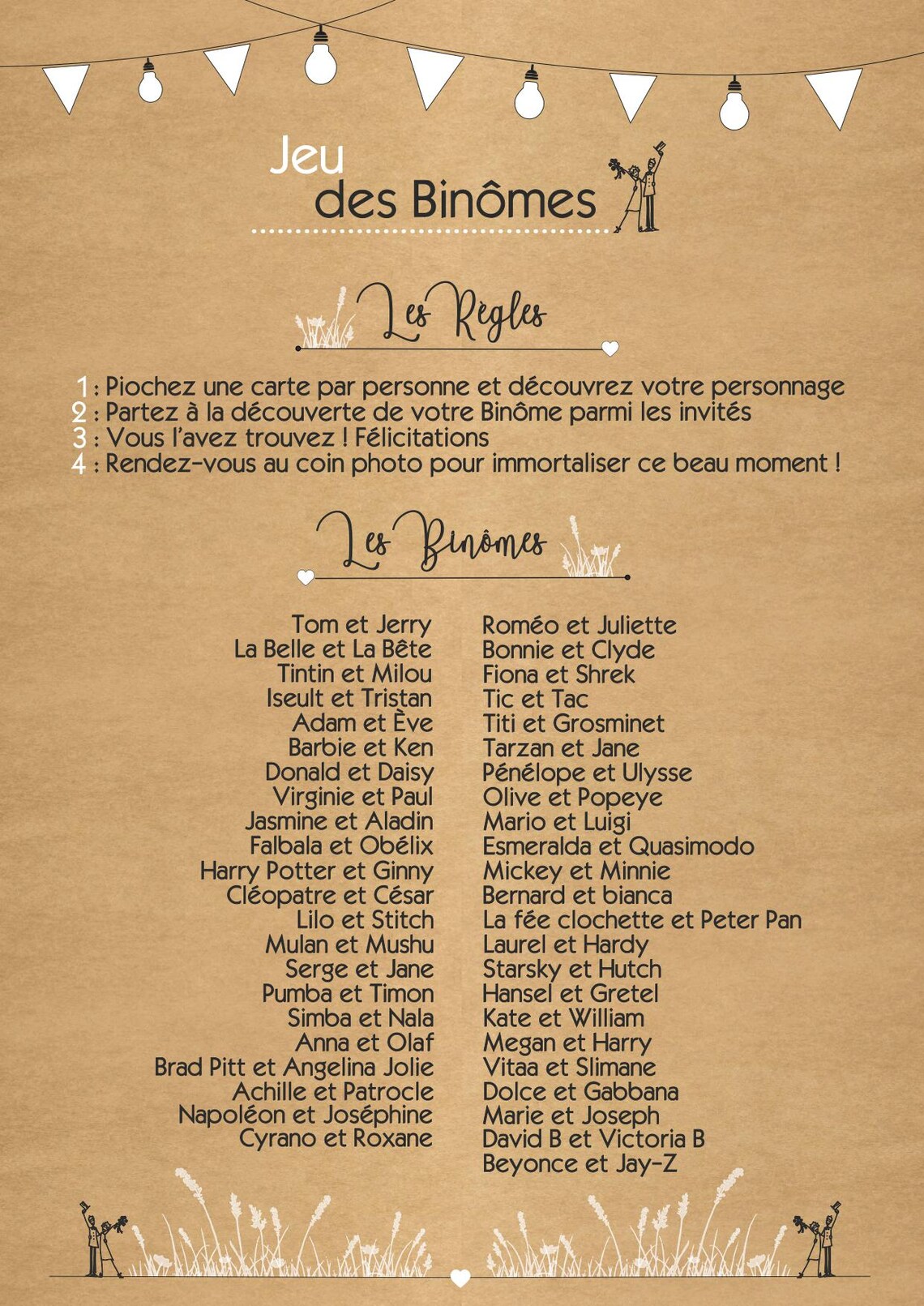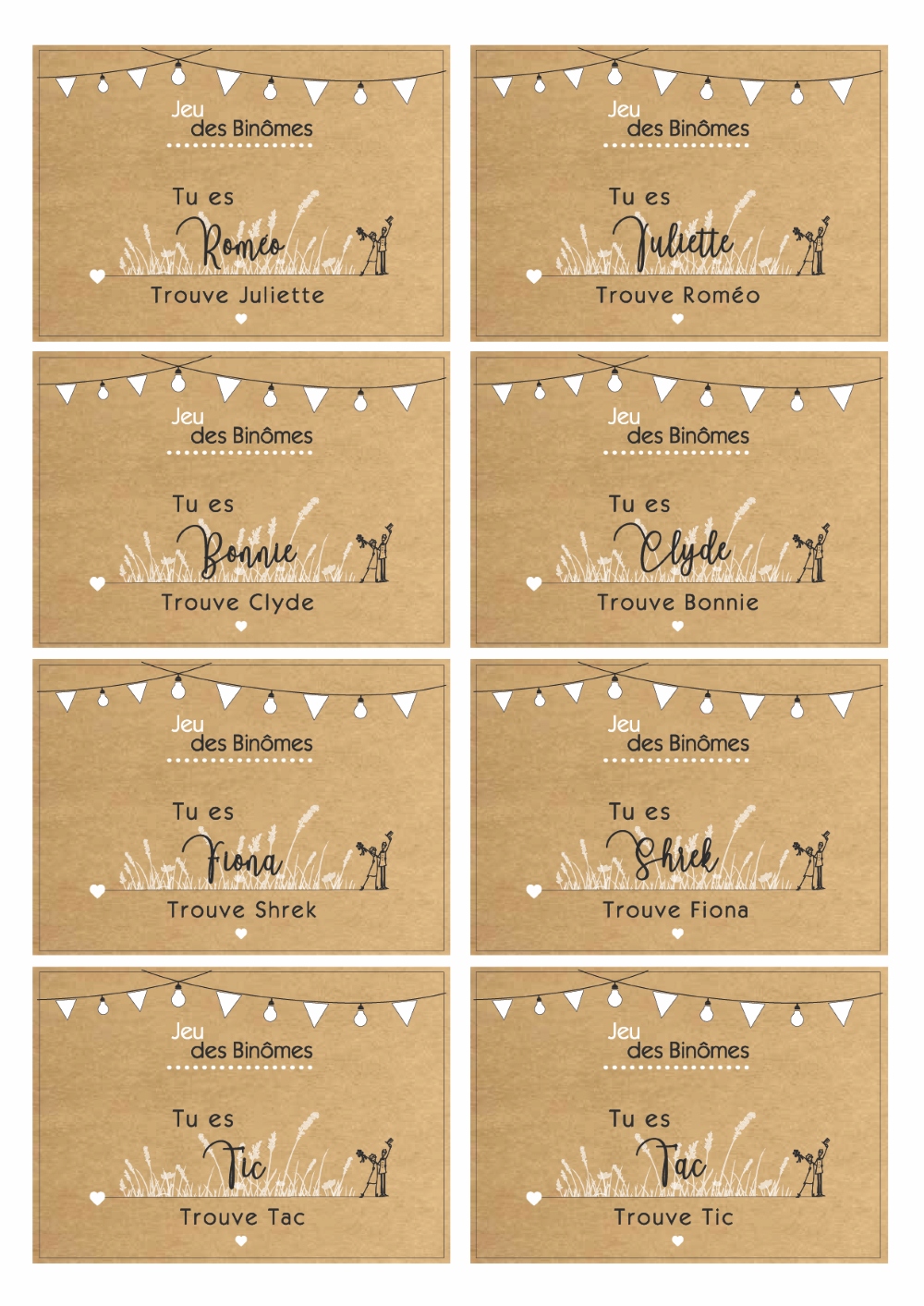 Ce jeu de mariage prêt à imprimer, permet à chacun de retrouver son binôme célèbre